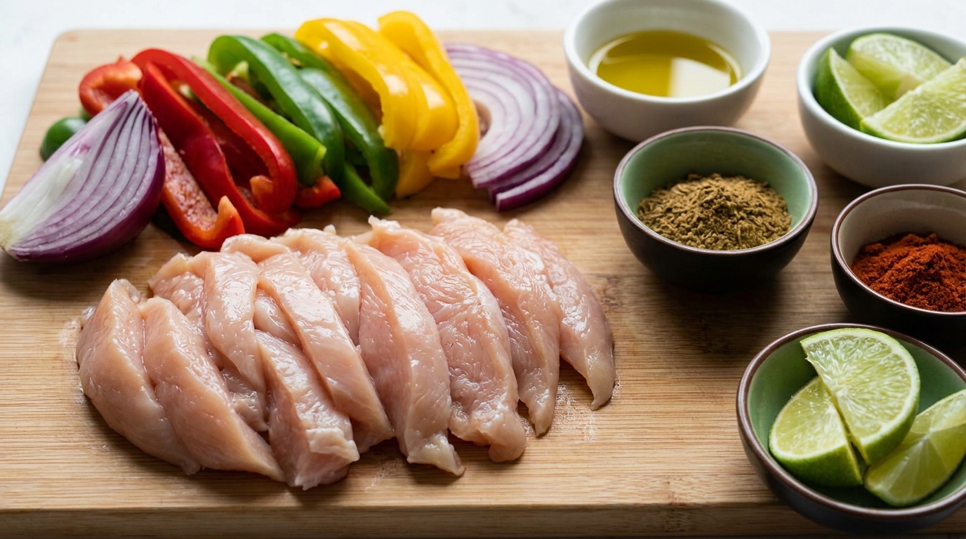 Slice bell peppers and onion into thin strips for even cooking. - Cook the chicken