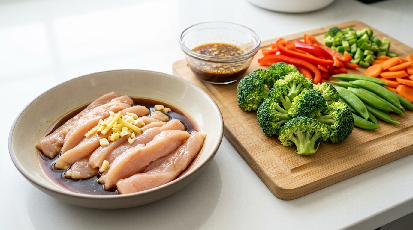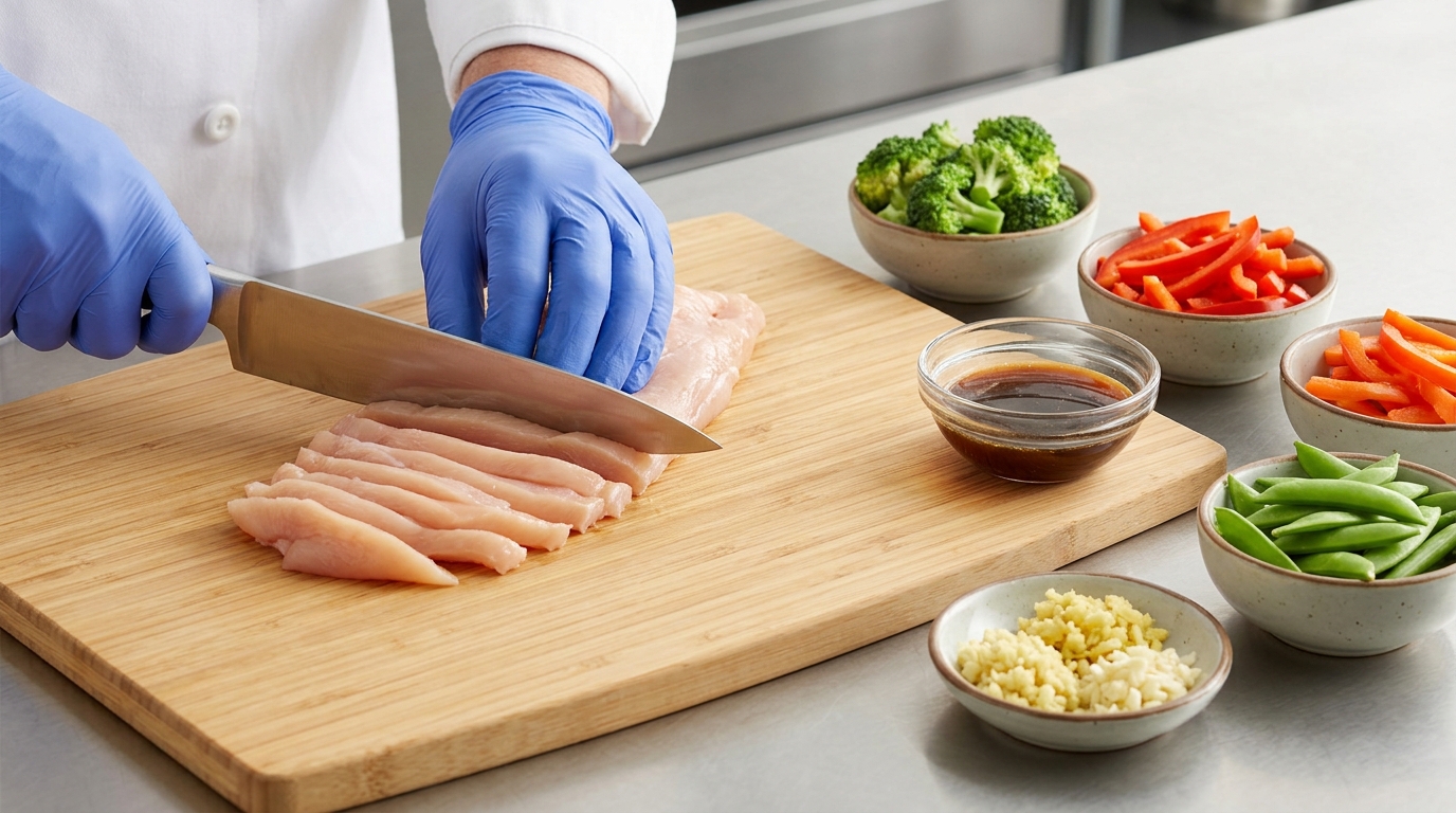 - Slice chicken thinly for quick and even cooking