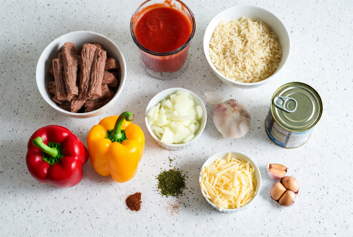 A combination of ground meat, rice, and tomato-based sauce is classic, but you can customize it with vegetables or grains.